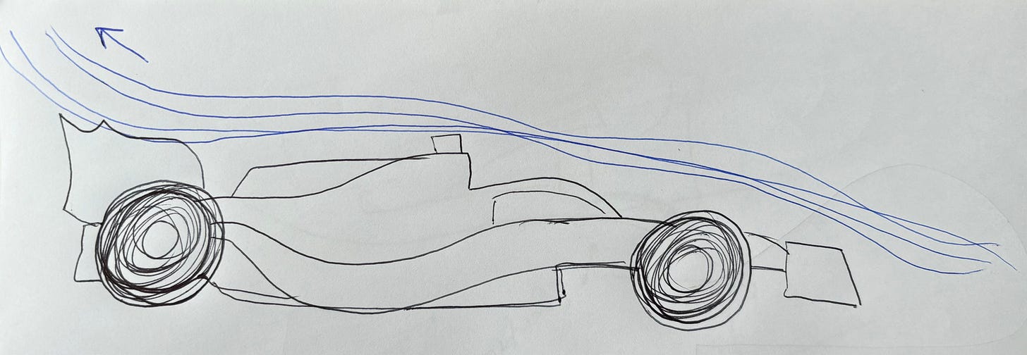 One of the key components for creating downforce is the REAR WING. If you look at my super technical drawing you can see how air passes over the car.